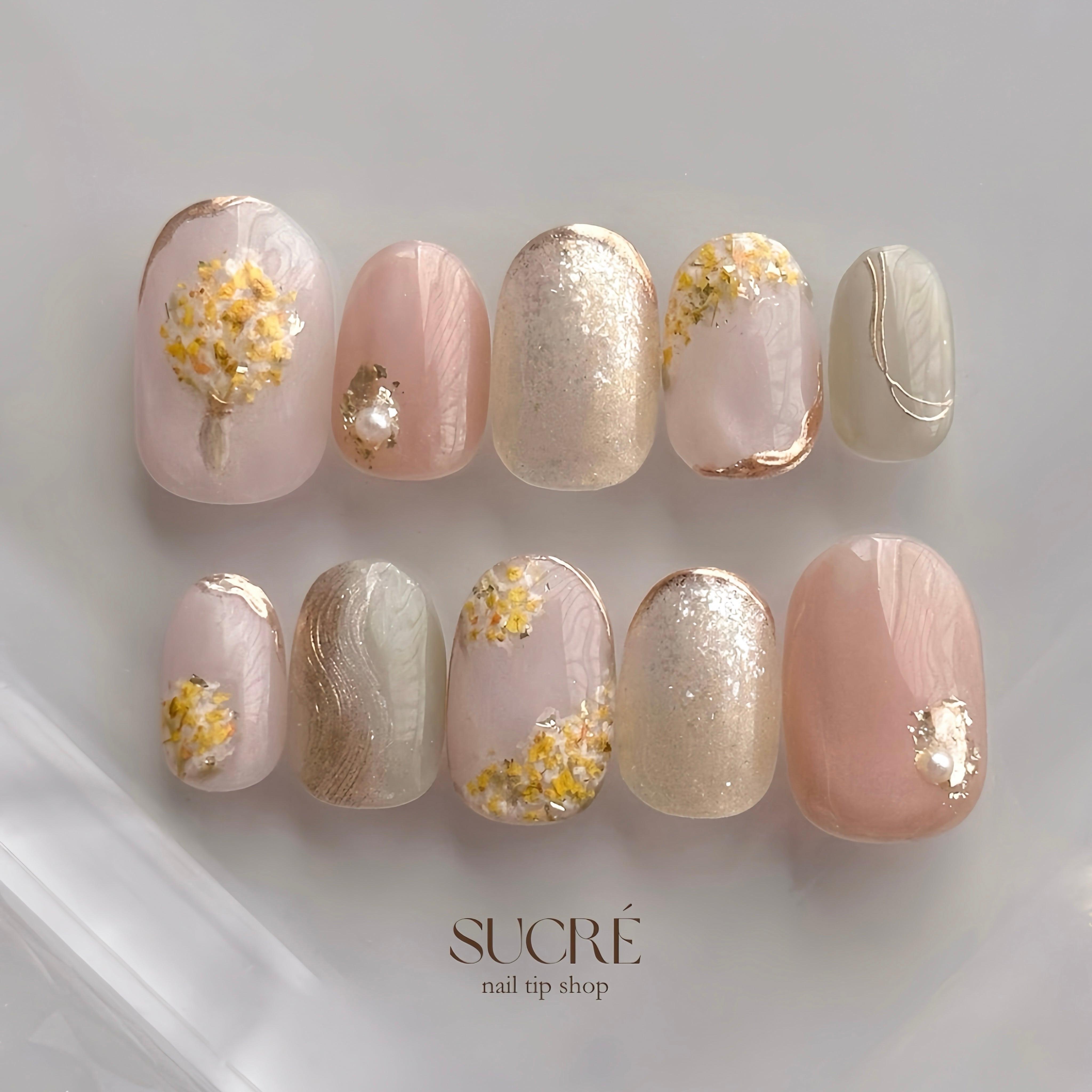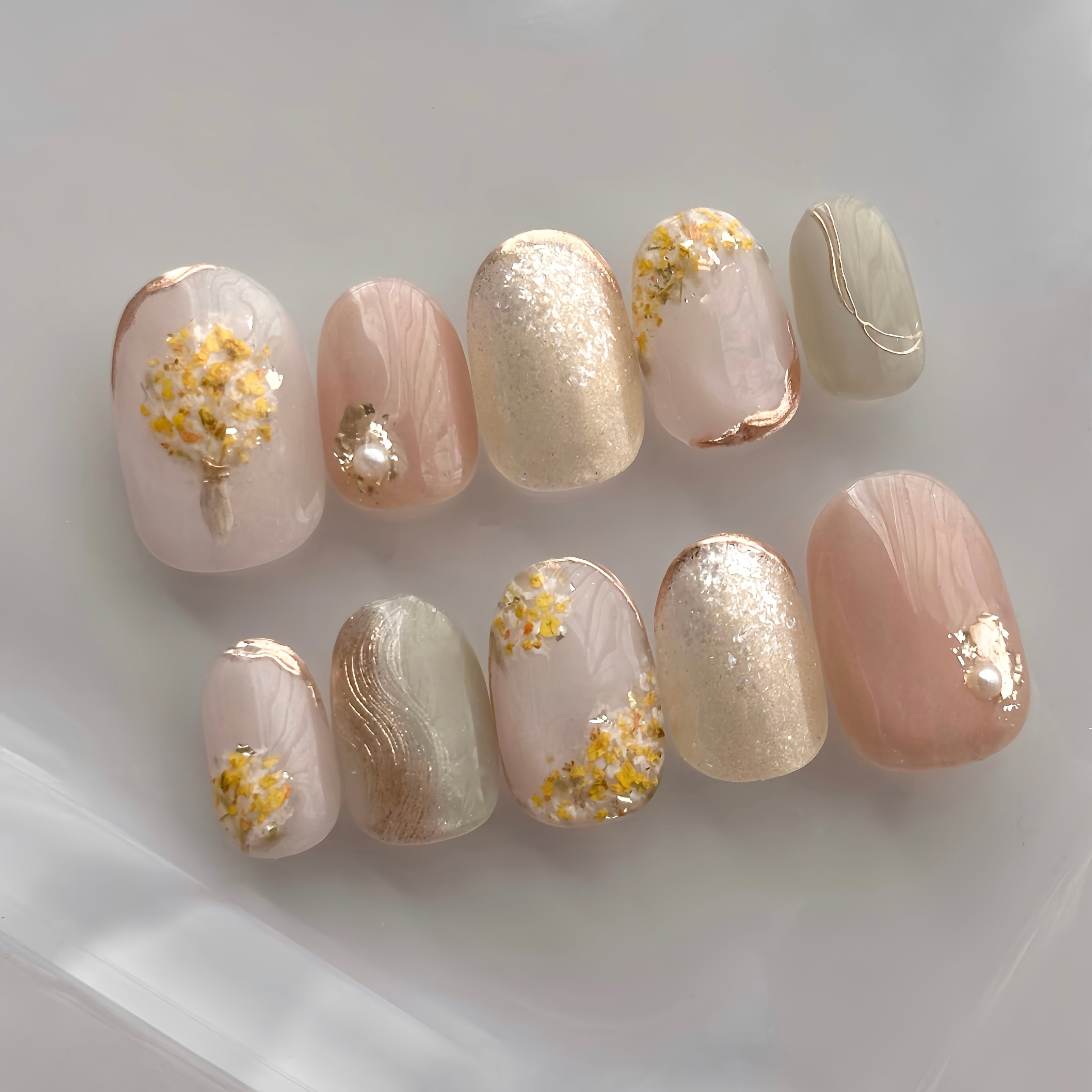 本物の押し花を使用して製作したミモザネイルです✨
